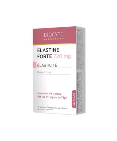 - Elastine Forte від Biocyte збагачені вітаміном C, потужним антиоксидантом, який захищає шкіру від впливу вільних радикалів, запобігаючи передчасному старінню;