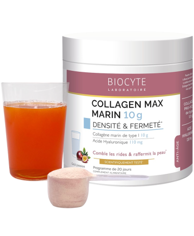 Харчова добавка Collagen Max 10g Marin від Biocyte – це джерело колагену максимальної концентрації, яке допоможе зберегти шкіру, волосся та нігті у здоровому стані. Формула заснована на морському колагені, отриманому з риб, який легко засвоюється організмом.
