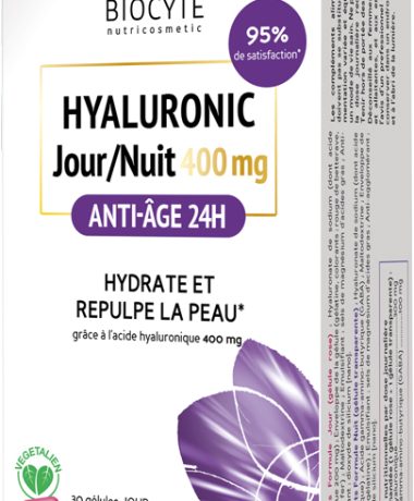 Hyaluronic Jour/Nuit від Biocyte – це унікальна харчова добавка, спеціально розроблена для інтенсивного догляду за шкірою обличчя протягом дня та ночі. Поєднуючи дві форми гіалуронової кислоти, вона забезпечує зволоження і живлення шкіри на 24 години.