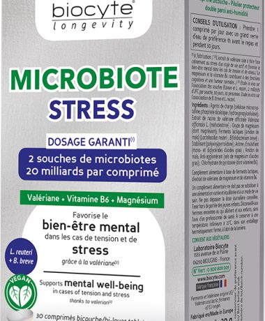 Харчова добавка від стресу Microbiote Stress від Biocyte – це спеціально розроблена формула, яка допомагає впоратися зі стресом та підтримує нормальну роботу нервової системи.